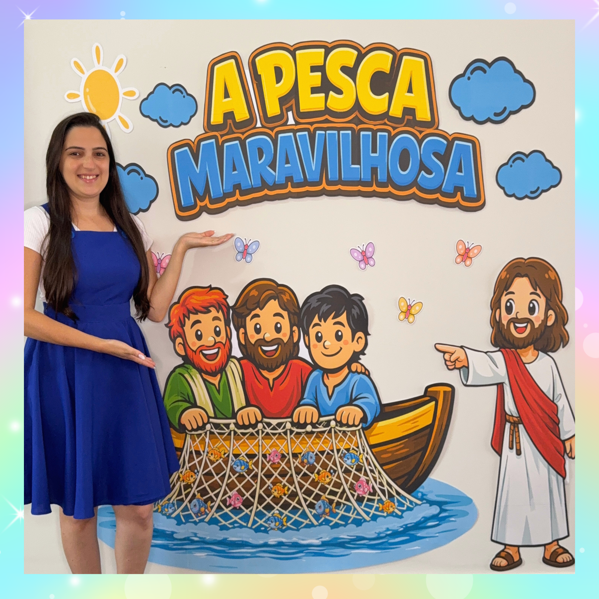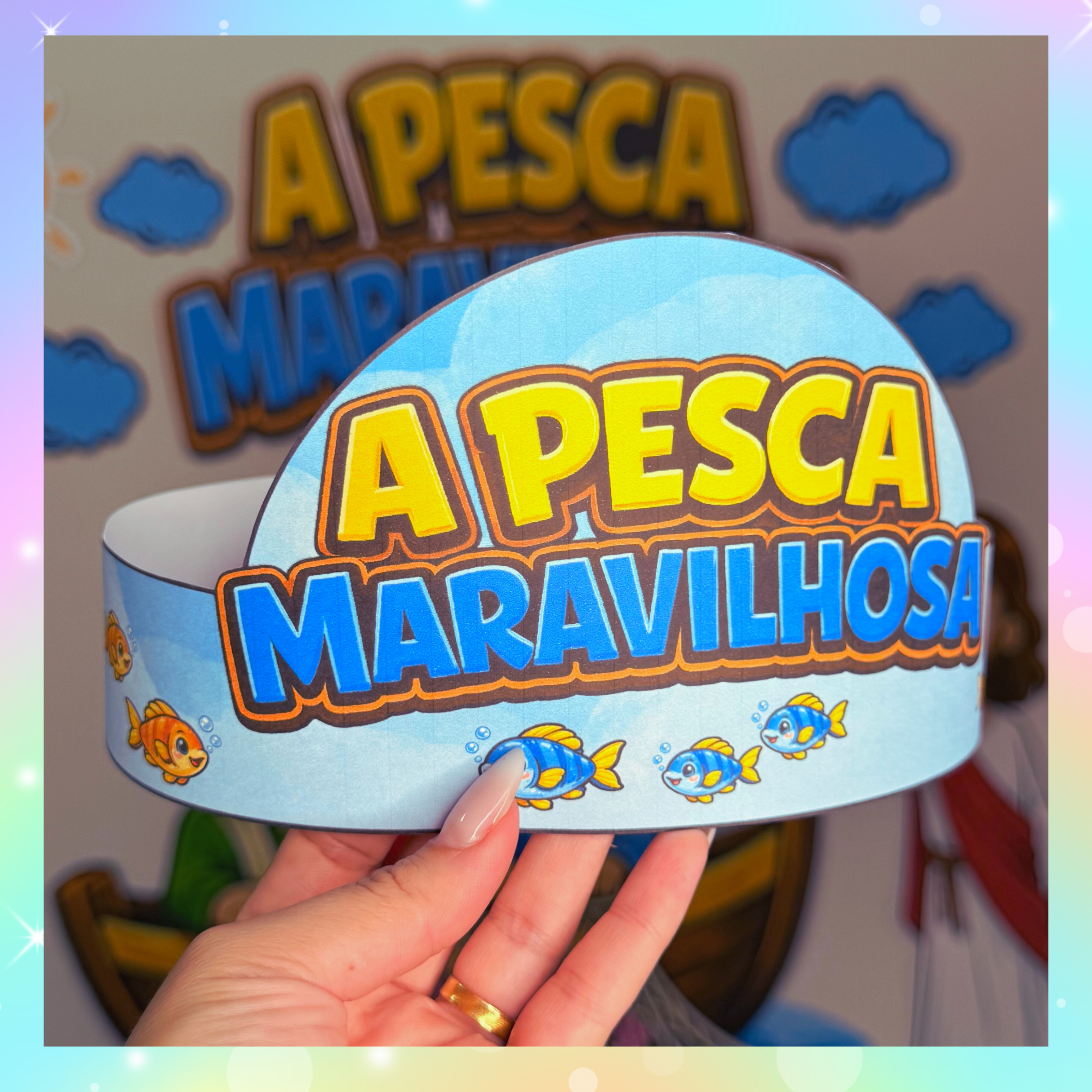 Além do painel, o kit acompanha uma coroa temática para as crianças, tornando o momento ainda mais especial, interativo e cheio de significado ✨