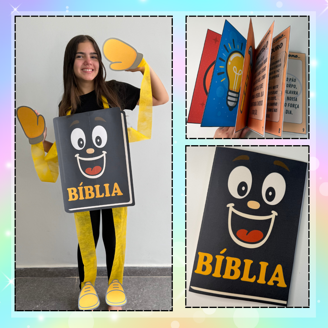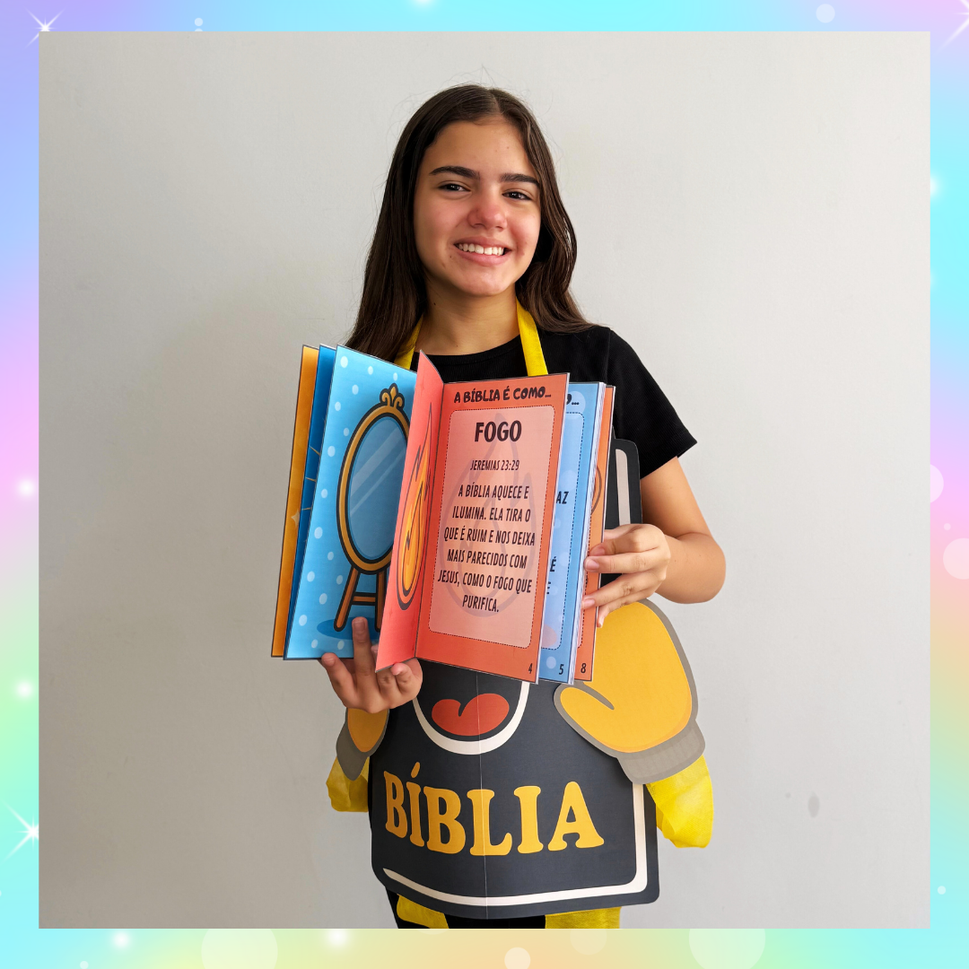 Uma bíblia de vestir super divertida + um livrinho colorido “A Bíblia é Como…
